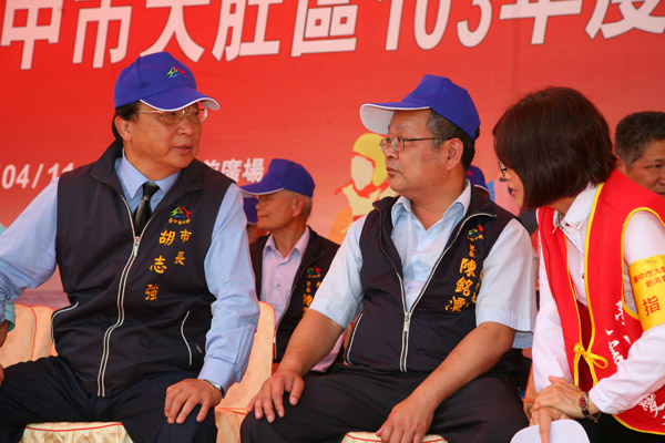汛期將至,臺中市長胡志強視察大肚區103年防汛實兵演習。