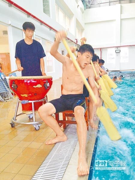 鼓手、槳手及奪標手放學後在游泳池畔集合,每周3次練習持續1個月,12名選手隨著鼓聲揮動池內水花培養出絕佳默契。結束後再到2樓健身房進行重量訓練,大家對19、20日比賽相當有信心。