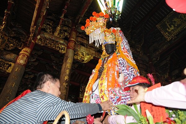 南瑤宮一早執事人員忙著準備素食早餐,工作人員忙進忙出,起駕前的祭典,除了邱市長還有來自新港奉天宮的董事長何達煌、會香大總理馮登科、老大媽大總理李隨重、老四媽大總理黃火爐、聖四媽大總理謝墩仁、縣議會副議長許原龍和地人人士共同祭拜,再將會香媽祖神尊捧過香爐恭迎入轎。