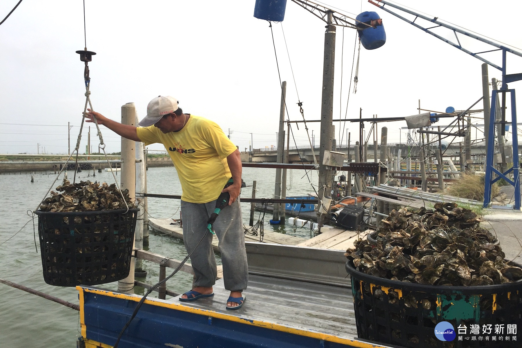 天鴿輕颱近逼,台南沿海牡蠣業者忙著搶收蚵仔(圖/記者黃芳祿攝)