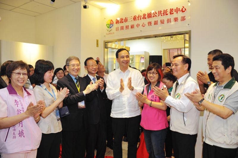 「新北市三重台北橋公共托老中心」26日揭幕,新北市長朱立倫強調,新北市公共托老中心兼具「銀髮俱樂部」與「日間照顧中心」的功能,前者提供健康長者運動、休閒、社交與快樂學習的環境,後者提供失智、失能長者專業的日間照顧,這樣二合一的服務模式是全國首創。