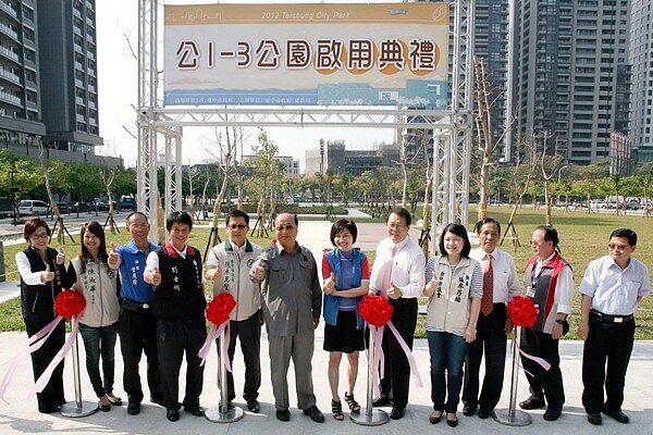 啟用儀式26日上午舉行,包括市長胡志強、副市長蕭家淇、建設局長沐桂新、主計處長蔣建中、西區區長徐仙卿、議員黃馨慧、劉士州、張廖乃綸、張廖萬堅等人都親自出席及剪綵,面對嶄新、簡約、環保風格的公1-3公園,紛紛表示肯定。
