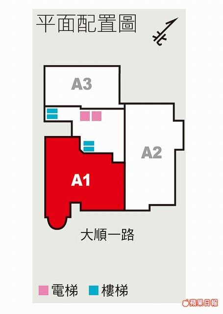 基地面積354坪,臨30米大順一路規劃1戶店面,坪數106坪,面寬12米,總價6288萬元。門廳挑高7.8米、與車道均從大順一路進出。1樓有會客廳,2樓有健身房與韻律室等休閒設施,頂樓則有空中花園。