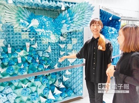 一張紙,無限可能!雲林科技大學創設系受託替主題莊園設計櫥窗,視紙材如古玩,既有加上創新,透過摺紙技巧,玩出「花聚摺學」,堆疊出呼應玫瑰主軸的浪漫、熱情、絢爛的人文藝術氣息。