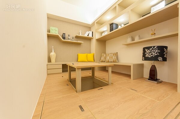 ▲2+1房格局,多功能取暖桌,座位下方是儲藏格,桌子可下收變成活動場地。