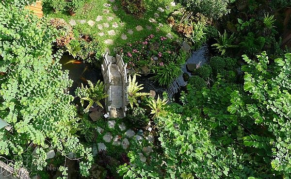 ←佔地百坪的花園,如同瓊瑤筆下不食人間煙火
