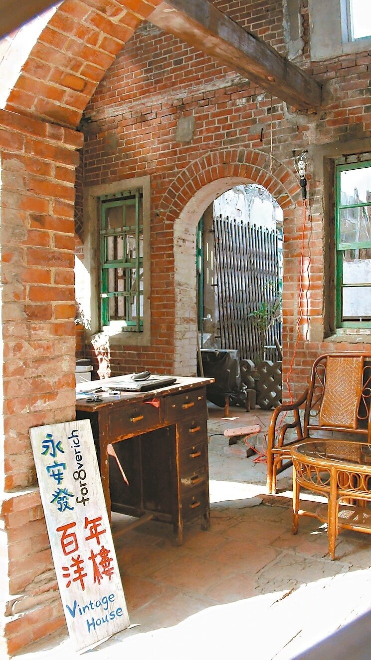 他在沒屋頂的古厝裡「孵夢」,讓大家在斑駁色差多變的紅磚牆內感受綠意仰望藍天,剛開始只賣咖啡及氣泡飲料,把整棟房子營造成露天藝廊。
