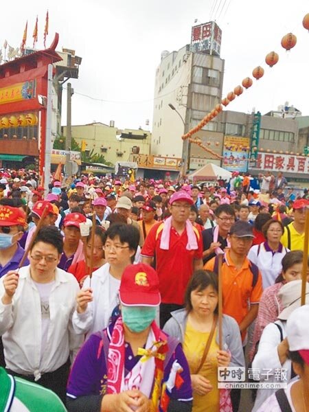 昨日一早7點鳴炮起駕後,雖然下著雨,仍湧來數萬人浩浩蕩蕩隨香,所到處家戶備香案,提供免費食品讓香客充飢,還有來自全國各地 信徒組成的環保志工隊,跟隨媽祖行腳清潔路面。