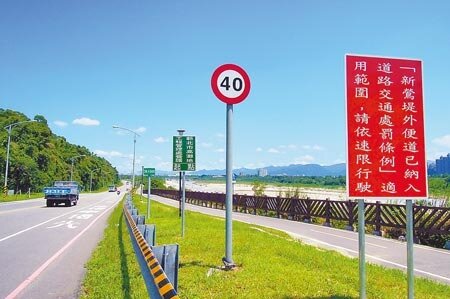 交通局推測,水利局設計單位會訂出40公里速限,應是基於行水區的特殊考量,畢竟堤外便道雨天的排水功能、視線不能和一般道路相較。