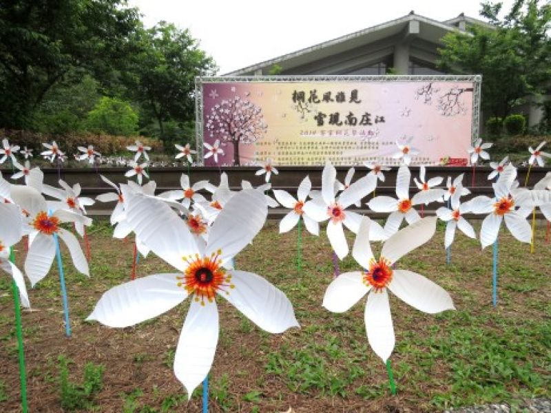 苗栗縣政府農業處 處長賴安平表示,今年南庄鄉的桐花祭以「桐花風雅見、雪現南江」命名,主辦單位為了營造不一樣的南庄桐花祭,今年以回收之保特瓶資源再利用製作的桐花風車為活動主軸,除了利用這些風車,配合現場景觀佈置成大型裝置藝術外,也有環保桐花風車DIY的教學,簡單幾步驟,就能做出環保、美麗又好玩的桐花風車。