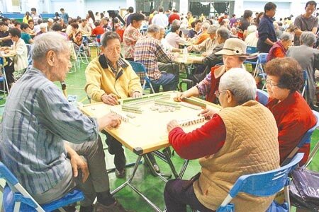 新竹市6日舉辦「第12屆風城盃健康麻將大賽」,有280位超過65歲以上的長輩參加,70桌齊開打,相當壯觀。其中有8位90歲以上長輩,分2桌開戰,平均一桌的年紀接近400歲(見圖,黃筱珮攝),是最高齡的「方城之戰」!主辦單位新竹市西北扶輪社長彭燕澄表示,長輩健康麻將大賽今年邁入第12年,計有280位65歲以上長者報名參加,70桌方城之戰一起開打,讓比賽會場竹市三民國中大禮堂顯得熱鬧非凡。