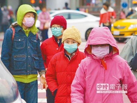 受寒流挾帶境外空氣污染物影響,全台各地空氣中懸浮微粒及細懸浮微粒濃度偏高,民眾外出紛紛戴口罩防寒也隔絕汙染。(記者王英豪/攝影)