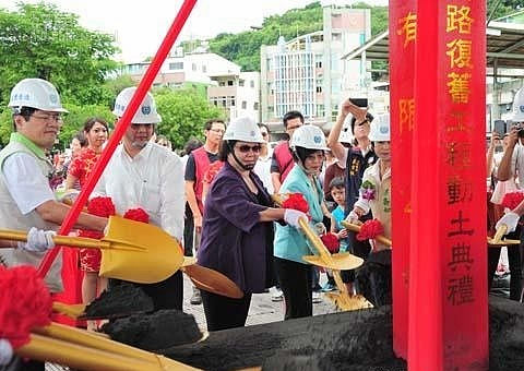 跨越臨港線鐵路的公園陸橋,在鐵路停駛後衝擊沿線景觀及發展,也使兩側土地缺乏有效縫合,為利鼓山及鹽埕發展,高雄市政府投入約3千萬元進行引道拆除及道路復舊工程,上午舉行動土祈福儀式,陳菊率副市長劉世芳、陳啟昱及市府團隊出席,祈求工程如期如質完工。