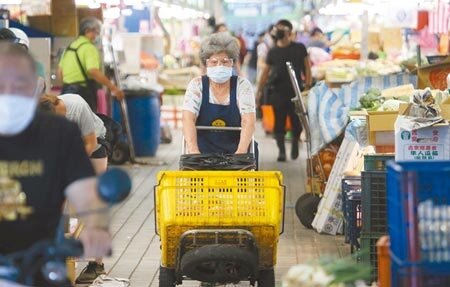 台北市環南市場休市三天後昨(6)日開工,攤商戴著護目鏡推運蔬果。圖/記者陳君瑋攝影