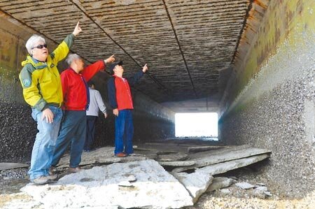 觸目驚心金門馬山聯外道路箱涵頂版大塊掉落,民眾痛批豆腐渣工程。(記者李金生/攝影)