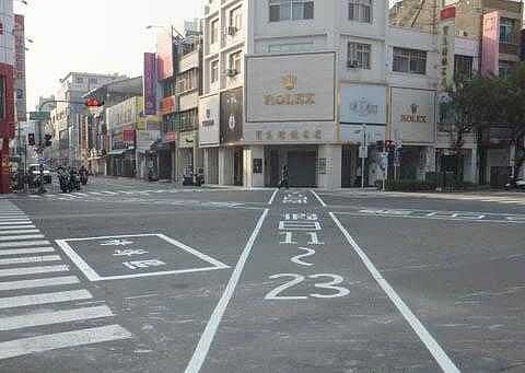 五福路與文橫路口緊鄰市區最熱鬧商圈之一的「新堀江商圈」,而五福三路與河東路、海邊路鄰近愛河兩岸,兩路口假日人潮眾多,同時轉向車流頻繁,行人需與左、右轉車輛爭道,無法於綠燈時相內通過路口,對行人穿越道路影響甚大,為保障行人穿越路口安全,經評估兩路口於例假日實施「行人專用時相」,行人可從路口「X型」白色標線對向通行,不用兩段式穿越路口。
