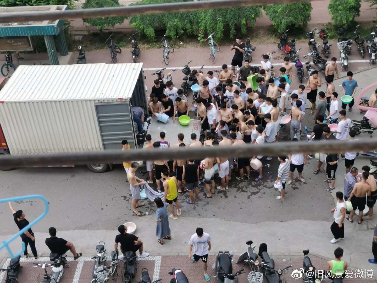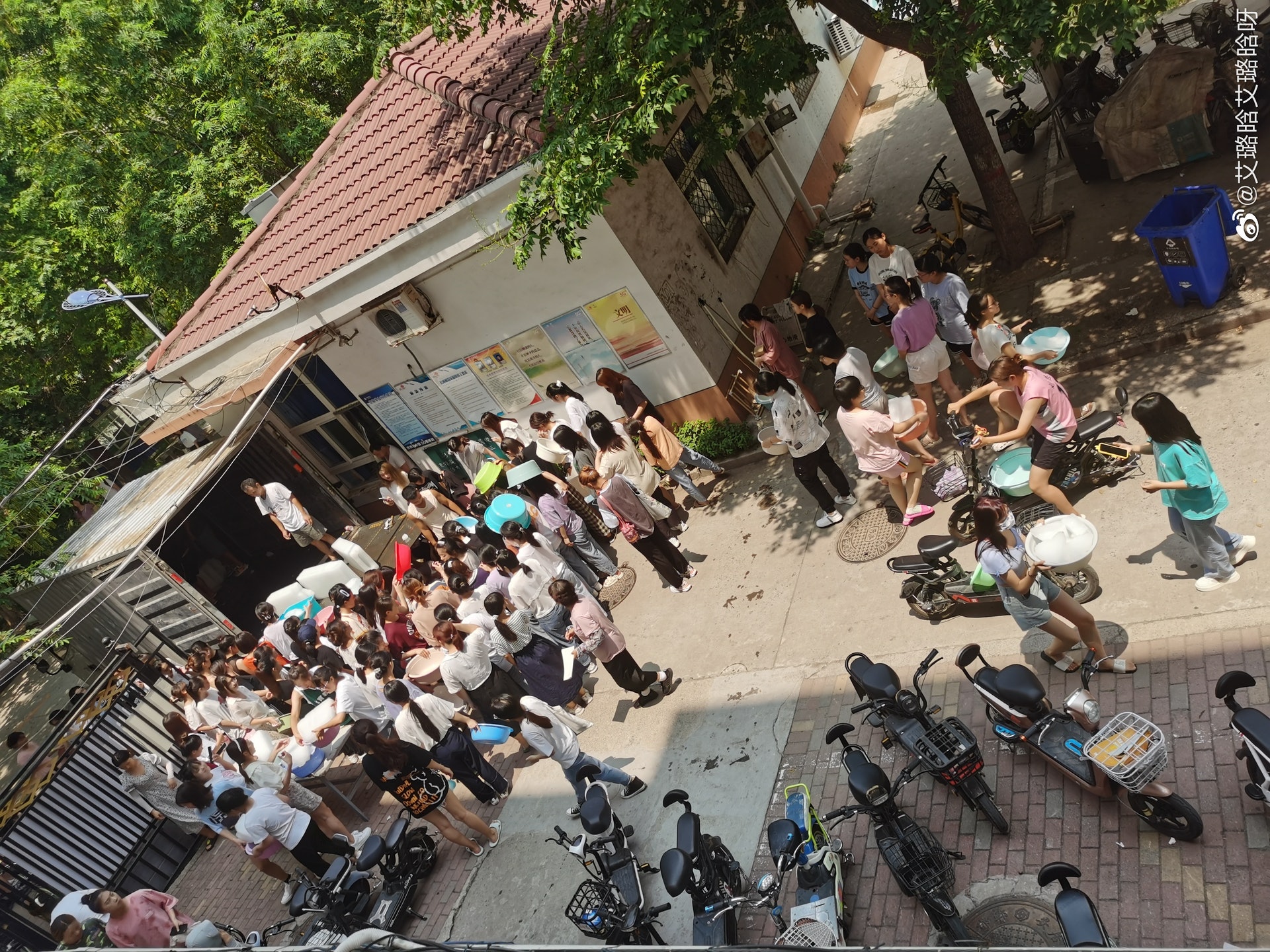 綜合陸媒報導,27日邯鄲學院購買了1000塊,總重約50噸冰塊,準備免費發送給學生,每個宿舍可領到25公斤冰塊。照片顯示,學生手持盆、桶、收納箱等容器,聚集在宿舍樓下,等候工作人員發放冰塊。