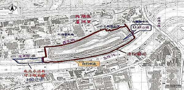 台北市內湖垃圾山至102年1月已開挖約183萬立方公尺,距計畫移除目標數量222.8萬立方公尺剩約18%,市長郝龍斌19日到內湖垃圾山視察施工情形,完工後16公頃綠地將是內湖、南港地區最大的親水觀景綠帶,是繼大安森林公園後台北第二肺,為南軟及內科工業軸線增添休憩場所,在這近千米的綠帶也是基隆河貫穿台北市區唯一沒有水泥堤防牆的區域。