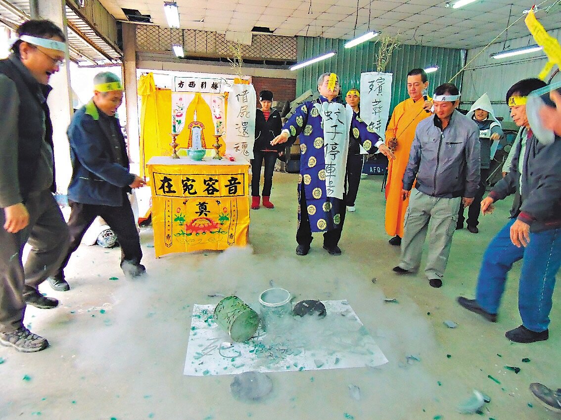 新北市立殯儀館附設火化場(三峽昇華園)還未興建的停車場,昨遭居民設靈堂、摔骨灰罈抗議。(記者邱榆蕙/攝影)