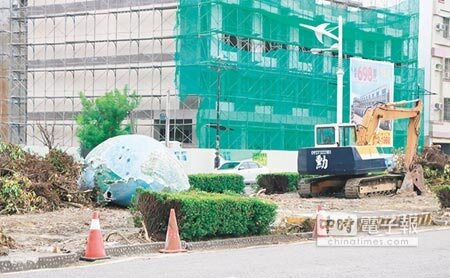 東港鎮公所執行光復路第3期綠美化工程,29日拆除佇立35年的地球儀指標(見右圖,謝佳潾攝),民眾見狀後不捨指責浪費公帑。鎮公所表示,全案在執行4年前已規畫好工程,因地球儀的水泥基座無法遷移,迫於無奈只好拆掉。