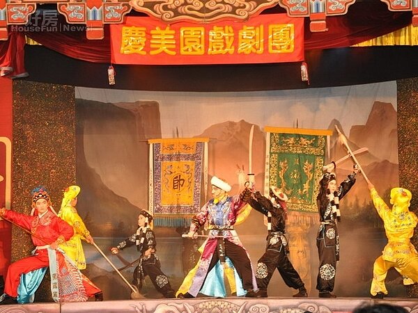 客家大戲《亂世英雄》日前在新埔鎮義民廟廣場演出,吸引大批民眾到場欣賞,這場大戲是著名的慶美園劇團今年度新編大戲,在簡單的劇情中,展現客家三腳採茶戲的生命力與活潑性,吸收現代劇場藝術,結合現代大型劇場舞臺設計,擴充演員編制66人,呈現不同於昔日的表演風貌。