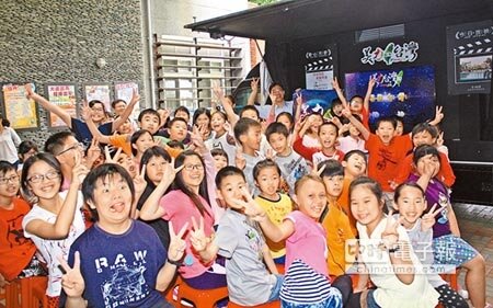 「美力台灣」3D行動電影車,昨來到冬山鄉大進國小,盼讓偏鄉學童感受3D魅力,大家看電影超HIGH,直呼有趣!(王亭云攝)