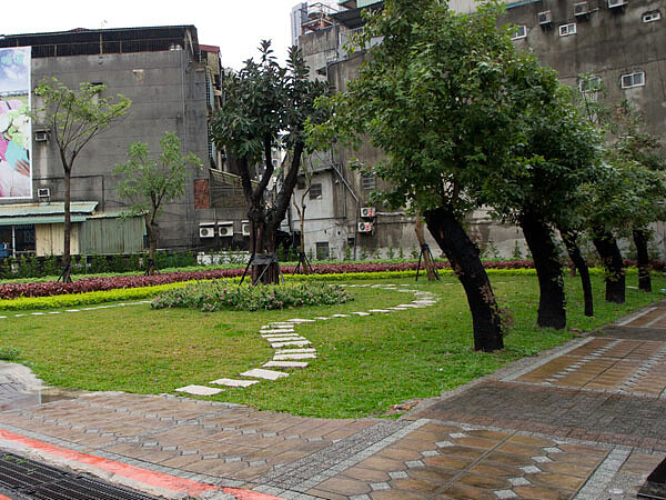 在板橋大觀路二段的台藝大文創園區提供綠家園的成果展現,社區在當地規劃師、鄰近居民協助下,打開狹隘道路空間,融入綠美化與當地居民創作的人行步道,使得孩童、居民經過時多了一份安全感,這是當地居民長久以來的盼望。