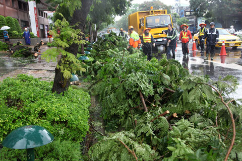 2日下午郝龍斌前往基河路一處大樓前關心市容復舊情形,現場公園處出動吊車,協助將路樹扶正、重新種回,並加強安全措施,同時,對於部分斷枝則是先經過裁切,再由環保局負責清運及清理環境。郝龍斌指出,環保局已啟動一千多位同仁,配合工務局、公園處著手整頓市容、整理路樹,希望能夠在恢復上班上課前,將市容回復到正常狀態。他也提醒民眾,如果看到住家附近有路樹折斷影響交通或環境的,也可打1999通報市府派員處理。