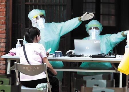 中央疫情指揮中心表示,其中高達480例是感染源不明個案,並以雙北最多,共401件。且從發病日來看,在4月10幾日,社區內就已有不明感染個案;至於源頭?包含華航機師或與萬華活動史相關者都有可能。圖為設在台北市萬華剝皮療的篩檢站23日仍然有不少民眾前往篩檢,工作人員引導篩檢的民眾,前往下一個流程。 (鄭任南攝)