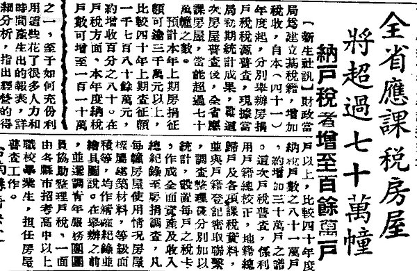到了1952年政府為了增加稅收開始稅籍普查,由於人口暴增當年的全台納稅戶較1951年增加了30萬戶。
