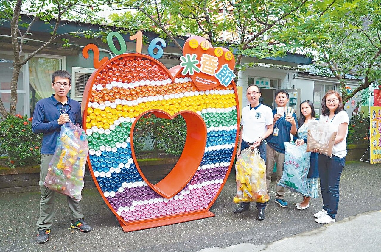 鄉公所已利用1200個寶特瓶,打造了一座「彩虹心型意象地景藝術」寬、高各2公尺,展現七色彩虹繽紛炫彩,非常適合情侶拍照、打卡,屆時將在有機米香節彩繪瓜棚中亮相。