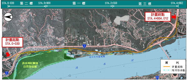 淡水河北側沿河平面道路的興建,新北市府目前已經先施作所轄段關渡大橋附近3A標高架段基樁工程,北市府表示,該工程完工後將快速輸運大量車流至北投區大度路,恐造成當地交通衝擊,故歷次環評審查過程中北市府均明確表示淡北運廊交通之改善應以發展大眾運輸為優先,如先建置淡海輕軌,再闢建淡江大橋完善聯外路網系統,並依都市計畫拓寬台2線為策略,反對興建該道路立場從未改變。