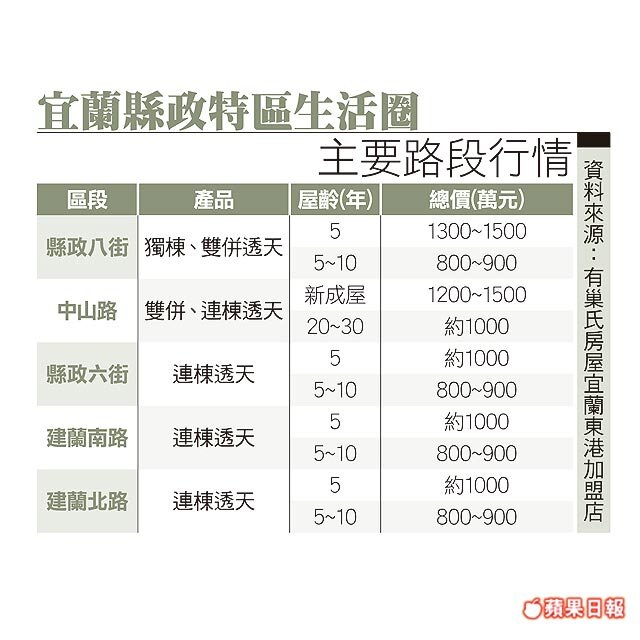 資料來源:有巢氏房屋宜蘭東港加盟店