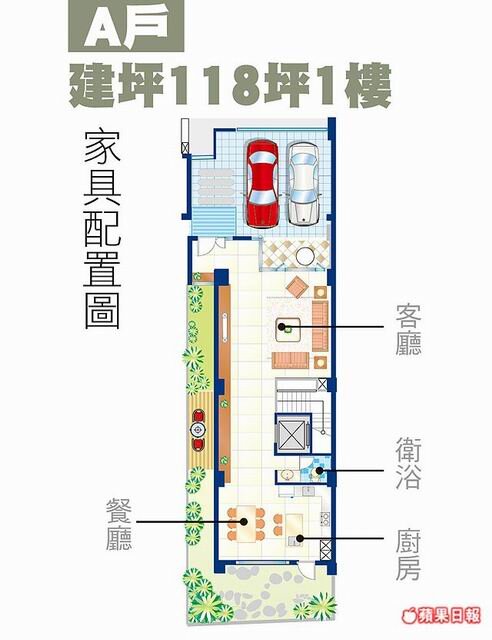 建議可選A戶,地坪67坪、建坪118坪、房屋面寬6.5米、總價3888萬元,該戶為實品屋,含裝潢、家具、冷氣等,總值600萬元,但僅加價388萬元,且家具可更換。D戶旁為空地,未來興建房屋後景觀將改變,較不推薦。