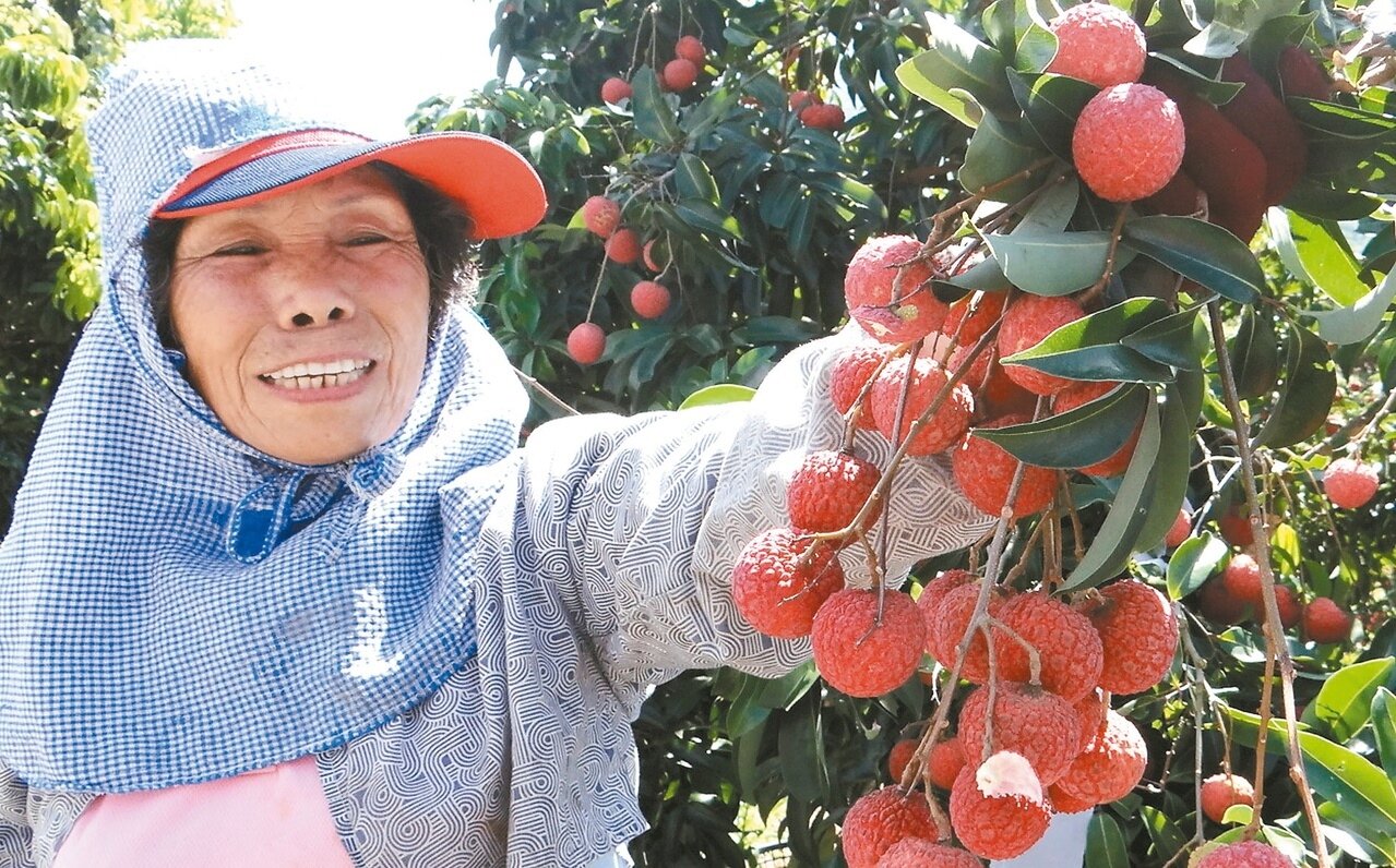 72歲的張玉梅在尚德村的荔枝園有8分大,約120棵。她說,都是桂味品種,比玉荷包、黑葉、糯米品種都晚熟,7月才收成。