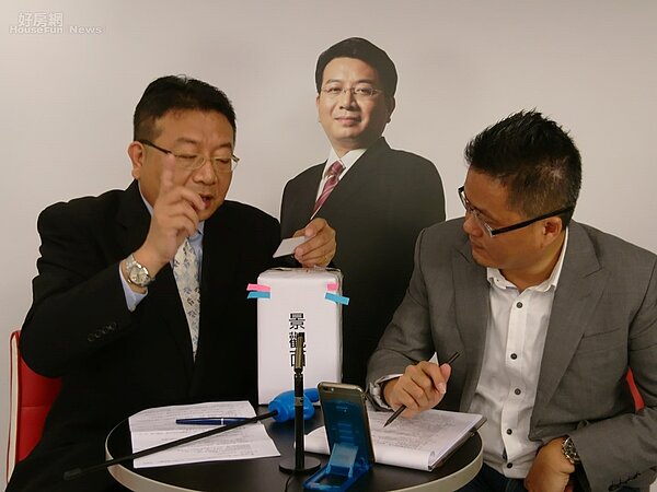 房產專家田大權(左),在好房直播中向民眾說明修法後的實價登錄對房產的影響。