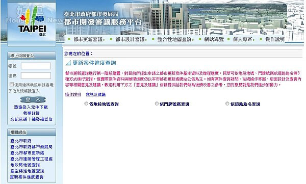 為讓民眾了解各項都更資訊和進度,北市府都市更新處創全國之先,即日推出24小時不打烊的「都市更新案件雲端查詢服務」。(擷取自/台北市政府都市發展局)