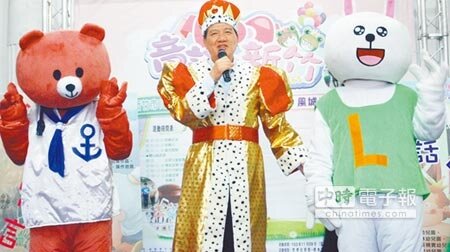 市長許明財昨變裝成童話故事Q版國王,教育處長蔣偉民化身為紳士伯爵,新儒林幼兒園小朋友以美勞作品舞出「龍馬精神」,為活動宣傳造勢,相當可愛吸睛。