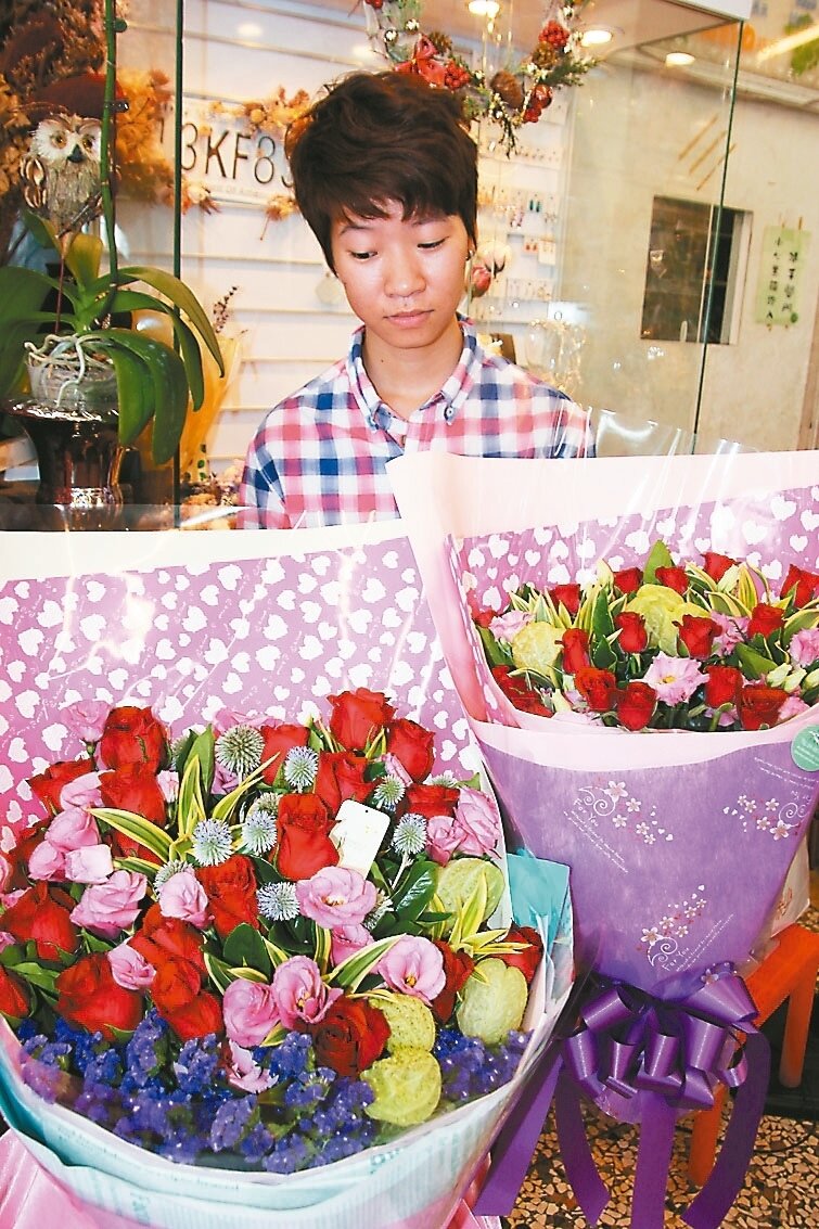 不過一般客人能接受的價格多在千元上下,楊文綜說,應該是熱戀期的才會送2000元以上豪華大花束,不過1000元花束款式也不少,除了傳統鮮花搭金莎巧克力,設計過的乾燥花或「香皂玫瑰」不同於鮮花數日就凋謝,不會凋謝的花可欣賞很久,也有交往較久的情人或老夫老妻會送。