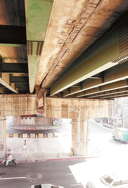 新工處長陳得意說,鋼筋混凝土結構橋梁使用年限約五十年,但因台灣屬海島型氣候,雨量豐沛,確實折損橋梁壽命。重陽橋是新北市三重、蘆洲通往台北市區的重要橋梁,由省府住都局施工,民國八十年完工通車,每天數萬輛汽、機車通行,橋下的中正路、延平北路車水馬龍,但橋梁側面保護層多已剝落,大片鋼筋裸露,相當嚇人。