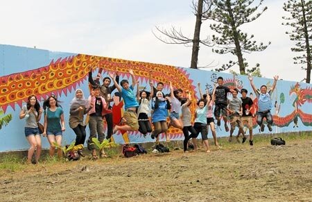 國際青年志工1個多月來,在雲林沿海社區彩繪10餘面牆壁,用畫筆見證跨國情誼。(張朝欣攝)