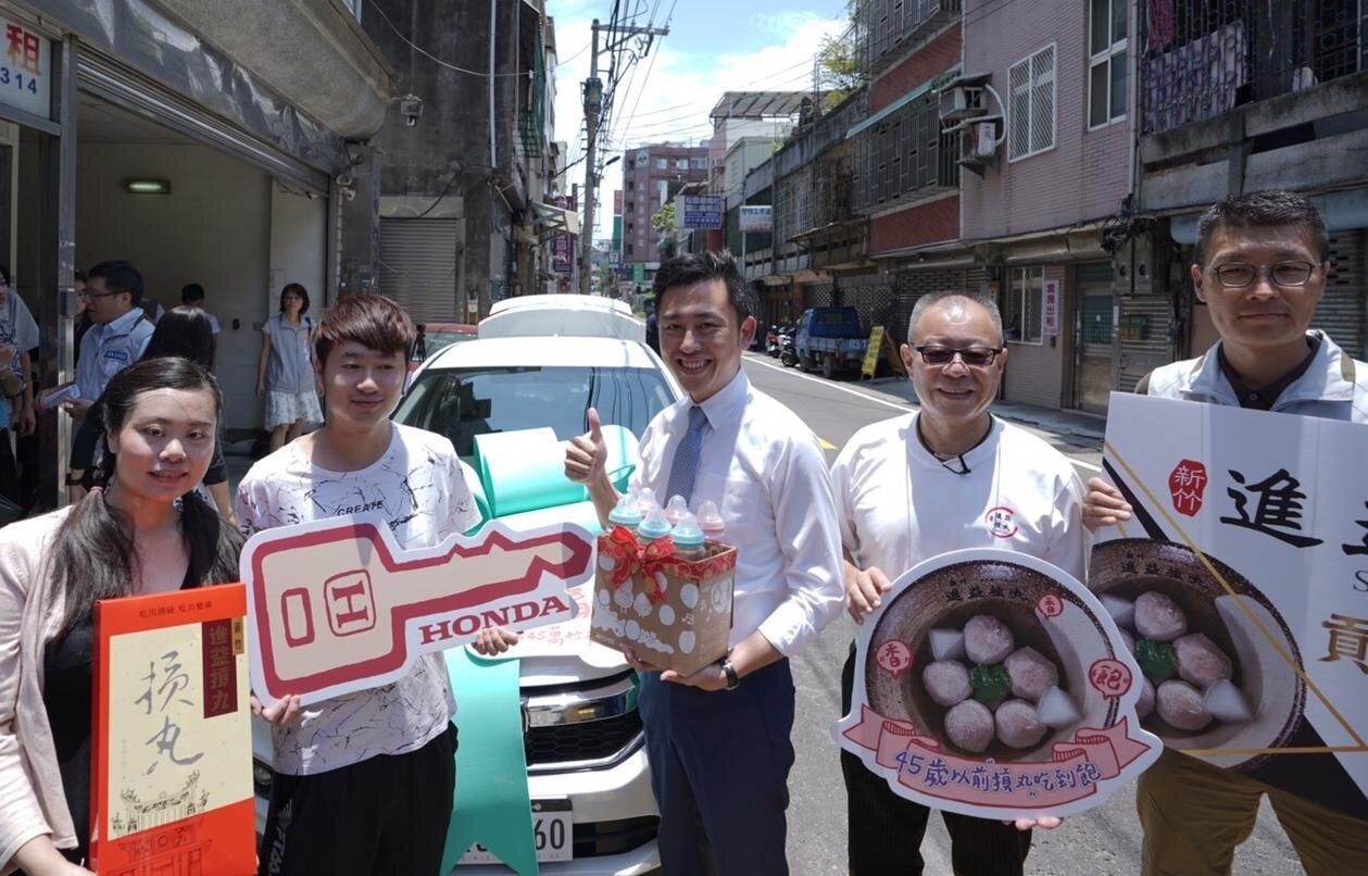 新竹市5年多來人口增加1萬8千多人,出生率居全國第5,0至14歲比率17.02%居全國第1,人口數也突破45萬人,市長林智堅昨天贈送第45萬人的幸運寶寶「冰冰」1輛Honda City轎車,進益摃丸也提供「免費吃摃丸到45歲」,冰冰的媽媽范雅茹說,兩年前新車被偷又被燒,沒想到兒子一出生就有新車,實在很幸運。