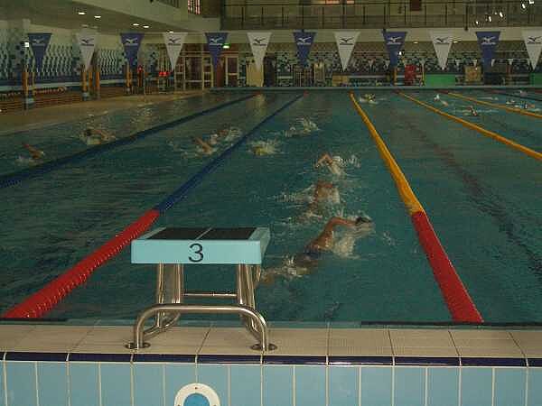 新北市第一座依國際游泳總會標準建造的新北市基層游泳訓練館在永和秀朗國小內長50公尺寬22公尺深2公尺適合訓練及比賽之用(圖/記者林茂榮攝)