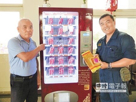 信眾投入百元鈔,依所求從自動販米機選取求功名、福壽、平安或文昌等鍵,比起拿著大疊金紙祭拜方便許多。販米機擺出後反應極好,金紙櫃台越縮越小,節能型的販米機1年用電不到百元,省力省電又降空汙,江氏父子也希望這波宗教節能風潮擴及更多鄉鎮。