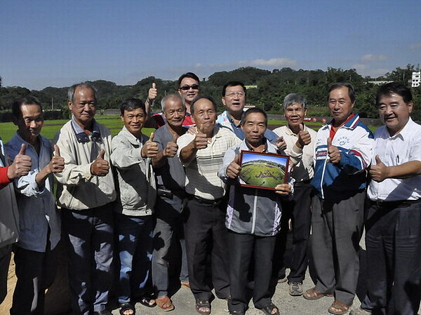 為行銷2013台灣燈會在新竹縣,新竹縣政府利用北埔鄉南埔村百分橋旁田園種植紫色及一般水稻的顏色,設計創意圖案將稻田變身成為活看板,4日上午新竹縣縣長邱鏡淳、農業處處長范國銓、縣議員陳正順、北埔鄉鄉長涂春海及北埔鄉農會總幹事莊烘岡等人出席成果發表活動。