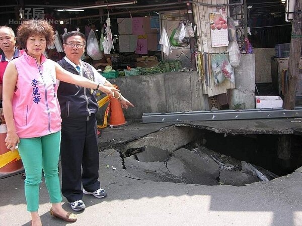 李麗華和里長陳中和馬上趕往,發現巷子只剩一部分路面可通行,市場下方淘空,如果車子經過可能陷入,在市場買菜的婦女,行走著隨時會下陷掉落,火速要求水利局處理。