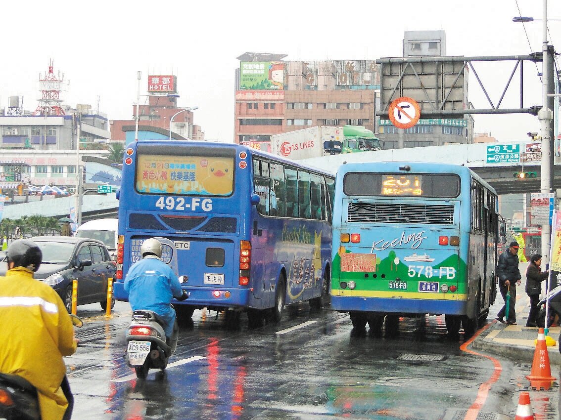 基隆市政府昨天檢討黃色小鴨交通管制措施,發現忠一、孝一路口公車站牌成為交通瓶頸點,擬暫取消,以暢通車流。(記者游明煌/攝影)