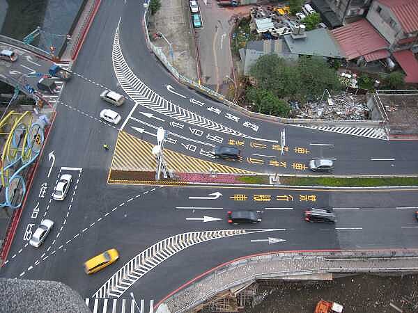 今年年初在縣民大道與板城路口南、北兩側轉彎處開始進行的道路拓寬工程,在新北市政府養護工程處、綠美化環境景觀處及交通局通力合作下,相關工程已於近日全數施作完成。配合路口路幅變寬,車道配置與號誌時制也一併作適當調整:現況縣民大道已增設右轉專用車道,可供車輛全時右轉板城路;華東街則增加紅燈右轉時相,除行人通行時段外皆允許車輛右轉縣民大道。