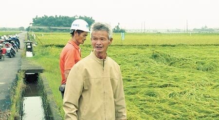 台南市稻米種植面積約1萬4000公頃,分布在後壁、白河、東山、柳營、下營、官田、六甲、新化等地;其中,後壁區就占了3400公頃。農民一早到田裡巡視,看到稻作倒伏狀況只能猛搖頭,無語問蒼天,估計損害面積約2到3成。