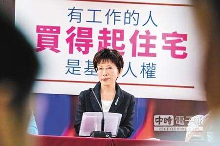 解決台灣高房價、年輕人買不起房問題,國民黨總統參選人洪秀柱(見圖,郭吉銓攝)昨天推出公民住宅政策,未來不限家庭人數,只要「經濟戶長」有全職工作就可以登記;且不需抽籤,依照工時、財產總額等點數,決定優先順序。此外,政府將補貼貸款利息,頭期款可從勞退基金個人帳戶先支用。